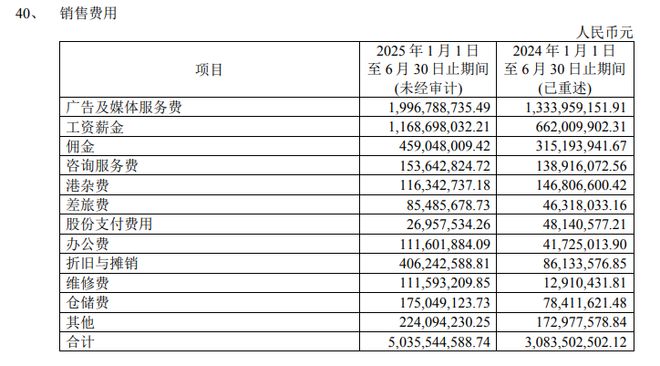 销售费用构成中,广告及媒体服务费是最大开支,2025年上半年,长城汽车这一开支增长约50%至20亿元;其次便是工资薪金增长76.6%至11.7亿元,涨幅更为明显。